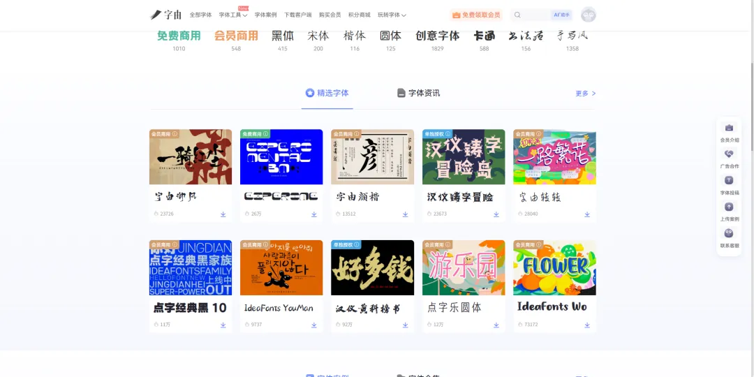 打开字由字体网站,注册登录后,浏览字体库,可按风格、用途筛选。
