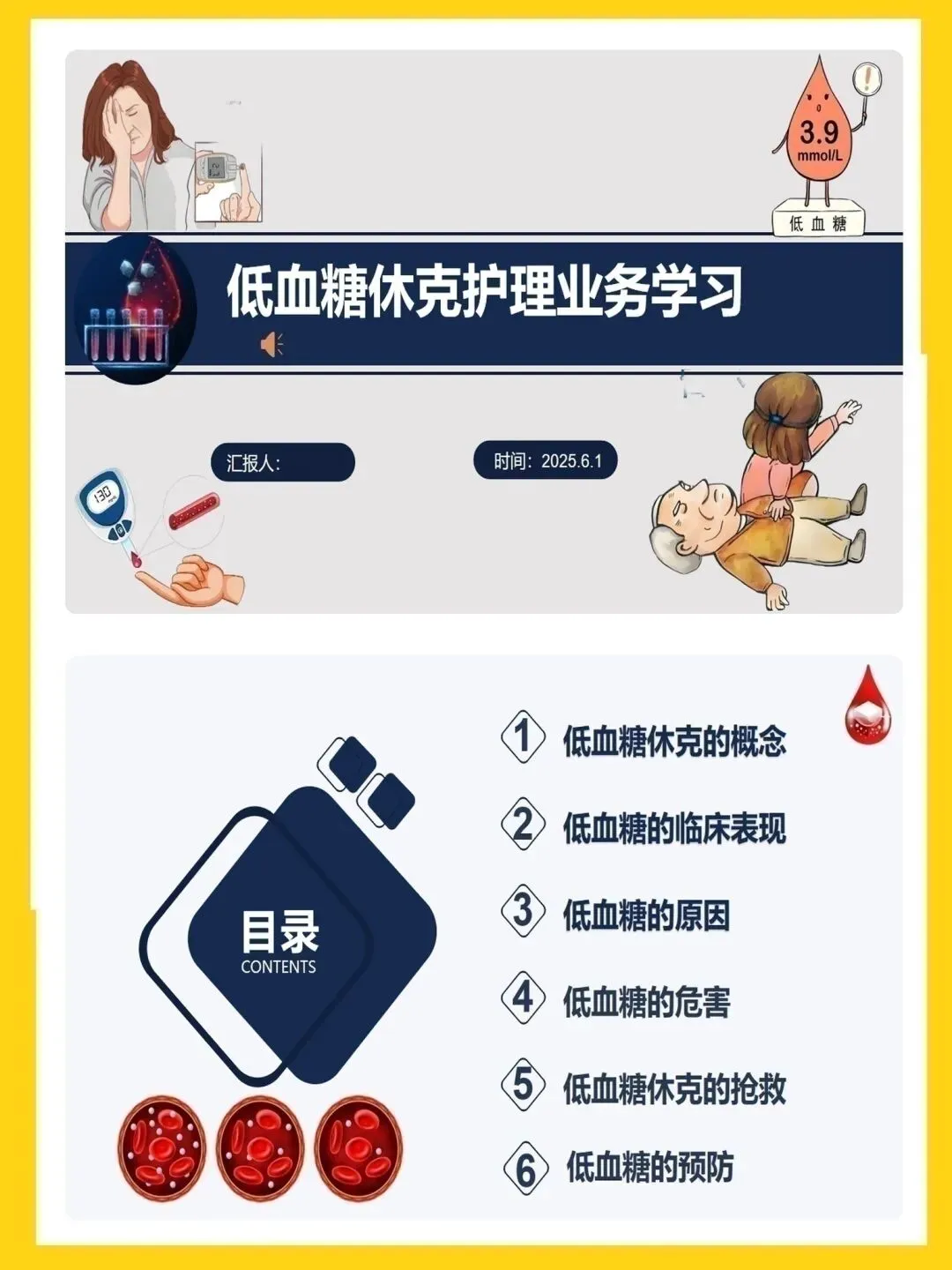 >【护理PPT模板】低血糖休克护理业务学习PPT模板