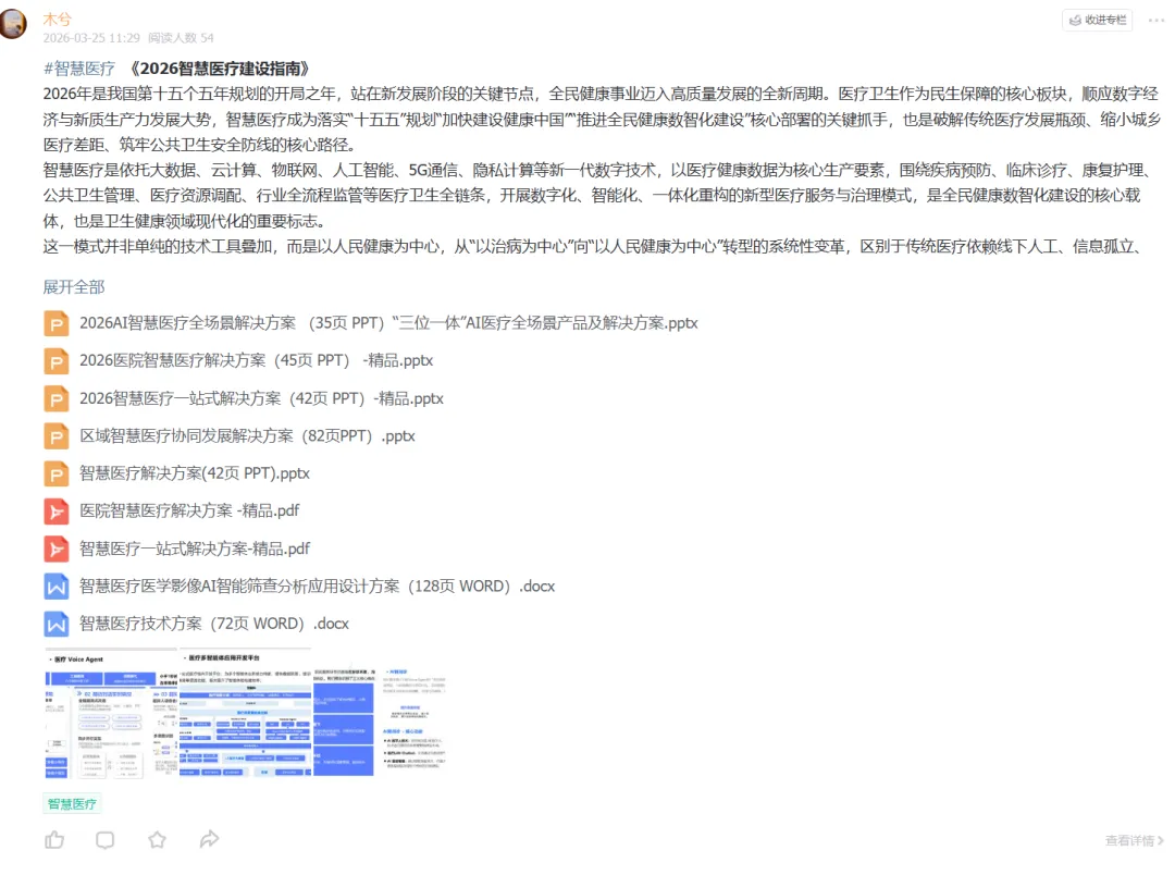 (由于页数太多,【数智行业·领地】星球,搜索“智慧医疗”标签查看方案完整版)苹果用户公众号回复“1”联系木兮或者直接木兮(MuxiYuebao0920),可享受优惠