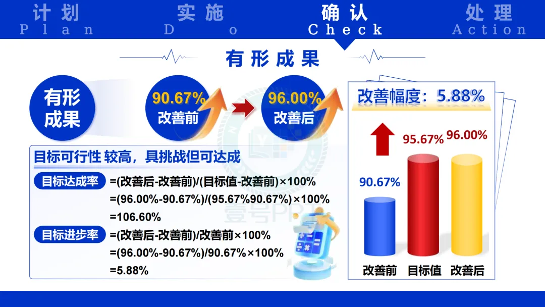 有形成果:满意度90.67% → 96.00%,目标达成率106.60%,进步率5.88💪%