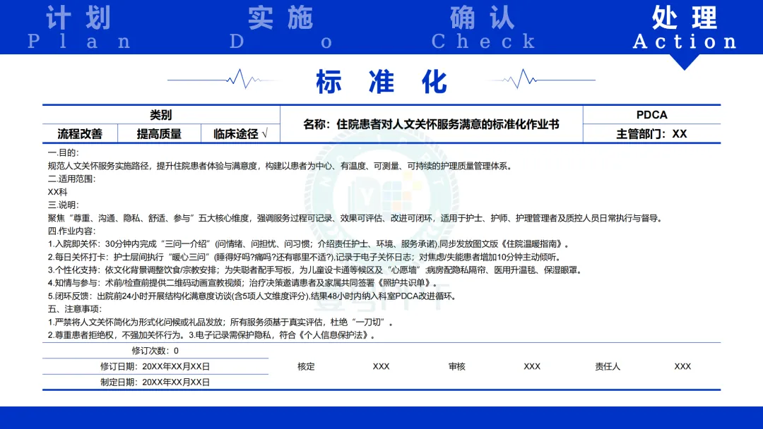 标准化成果:形成《住院患者人文关怀服务标准化作业书》📒,纳入护理常规