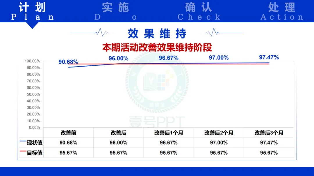 检查阶段 | 满意度提升至96%,目标达成率106.6%;团队能力全面提升。 |