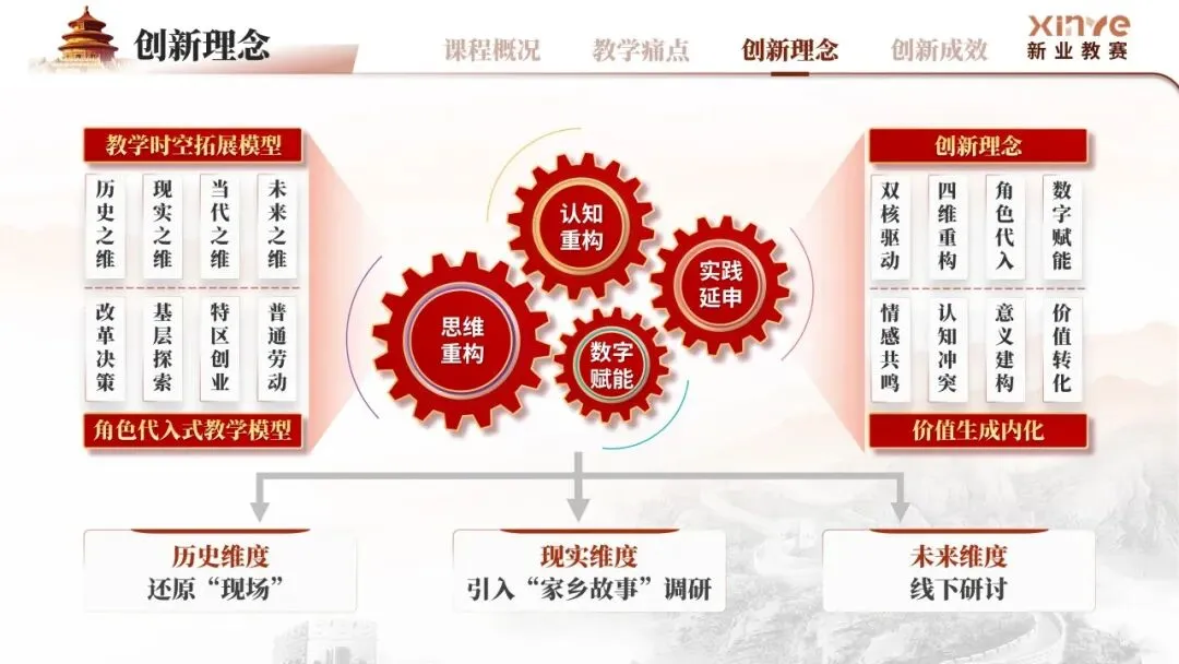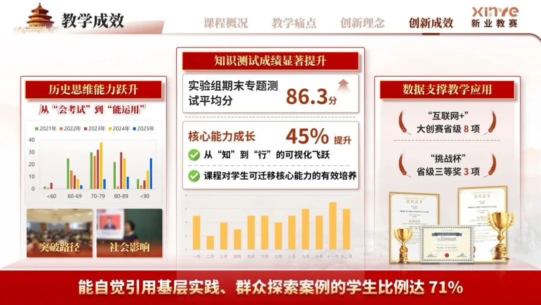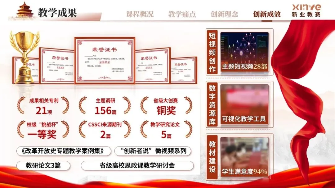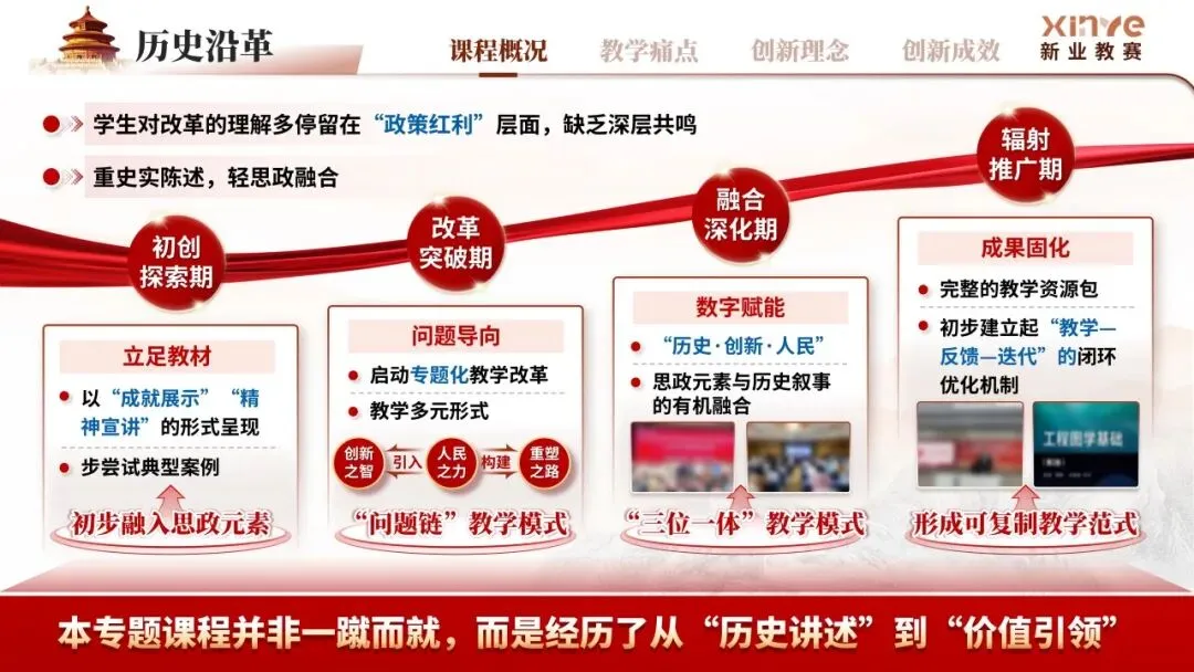 固定四大核心模块:课程概况→教学分析→创新举措→创新成效,层层递进、符合评审习惯。