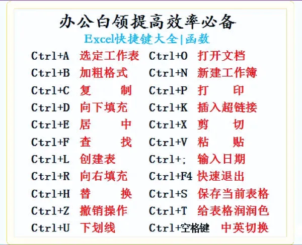 >Excel快捷键函数大全|提高效率必备