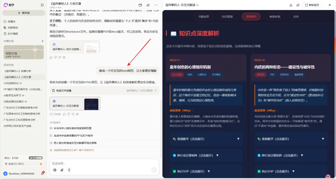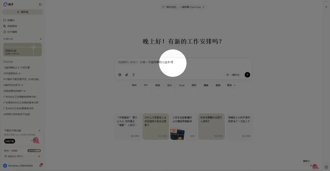 做 PPT 时,你是否遇到过这些痛点:演讲中观众突然提问,临时组织语言容易逻辑混乱;同一问题被反复询问,浪费演示时间;静态页面无法按需补充细节,信息传递不精准。而扣子空间(Coze)作为字节跳动推出的智能体平台,不仅能快速搭建专属 AI 助手,还能无缝嵌入 PPT,实现实时对话交互 —— 观众可随时提问,AI 即时解答,演示者无需分心回应,专注核心内容传递,让 PPT 瞬间升级为 “智能互动工具”,专业度和体验感直接拉满!下面结合教师说课这一高频场景,以及扣子商城热门智能体 “快速榨干一本书” 的实际应用,为大家拆解 “PPT 接入扣子空间 AI” 的完整流程,全程无复杂操作,新手也能 10 分钟搞定~一、前置准备:3 分钟搞定基础配置