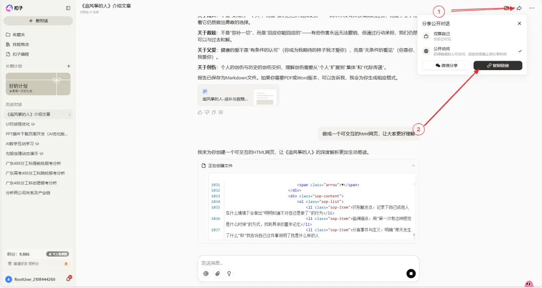 (一)先获取扣子空间的 “专属交互直链”(最关键一步)