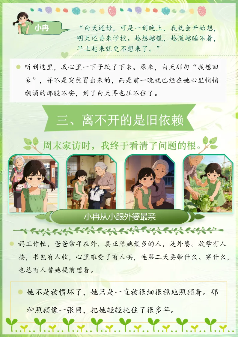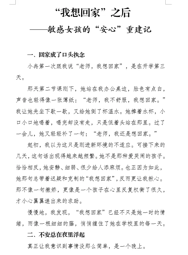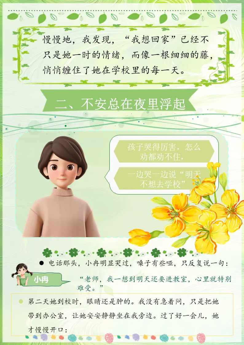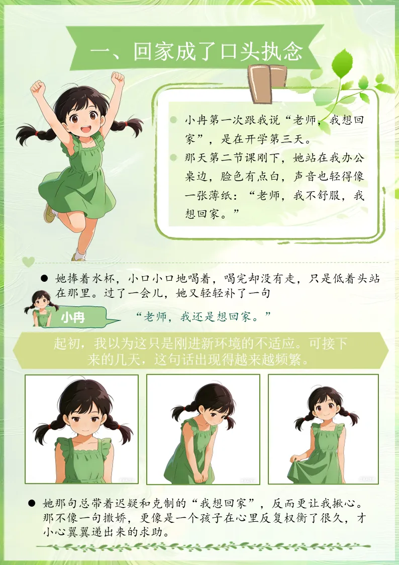 慢慢地,我发现,“我想回家”已经不只是她一时的情绪,而像一根细细的藤,悄悄缠住了她在学校里的每一天。