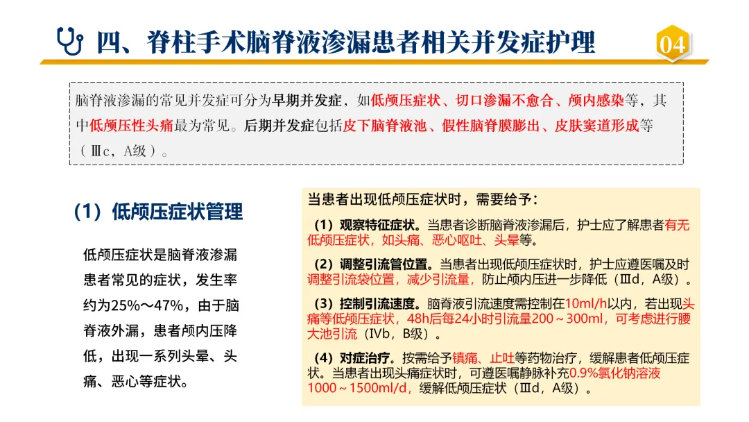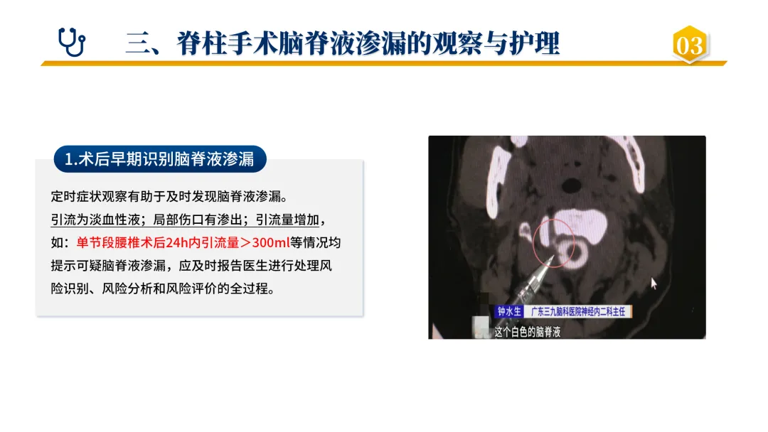 【PPT】脊柱手术患者脑脊液渗漏护理专家共识(2024版)