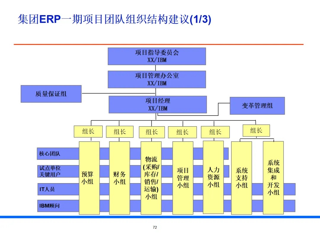 建立完整项目实施组织,配置项目经理、业务专家、架构师、开发、测试、培训专职角色。