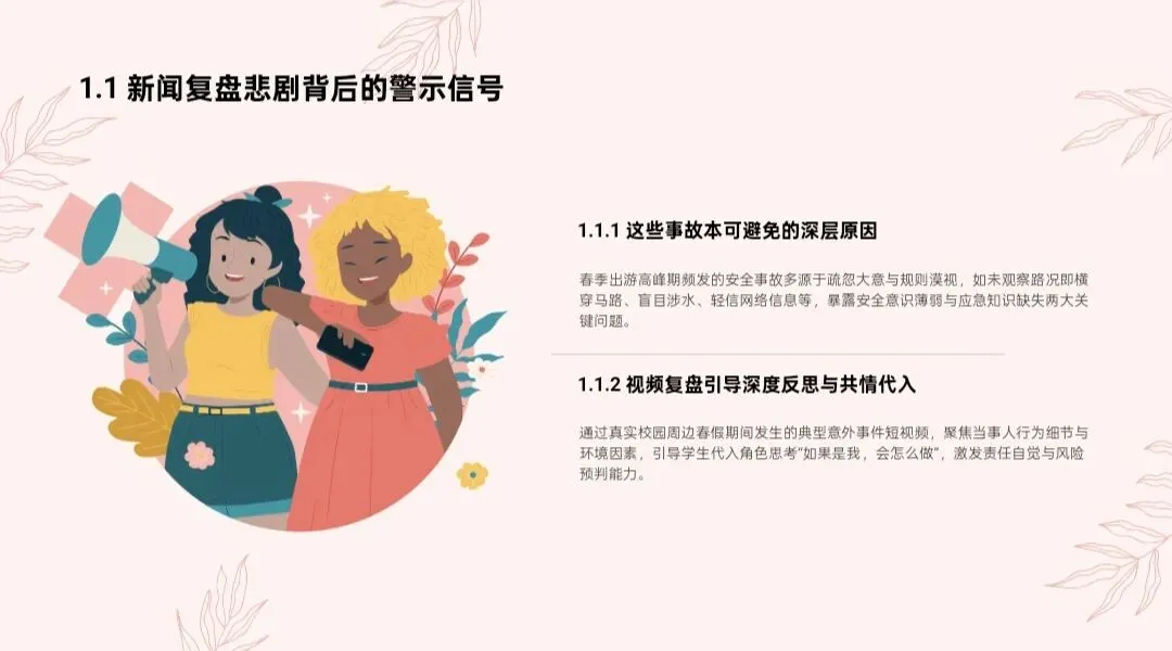 总结发言:老师把安全讲得再多,不如大家心里多一根弦。春假是放松身心、感受美好的时光,而安全,是享受这一切的前提。希望同学们带着智慧出行,带着平安回家。