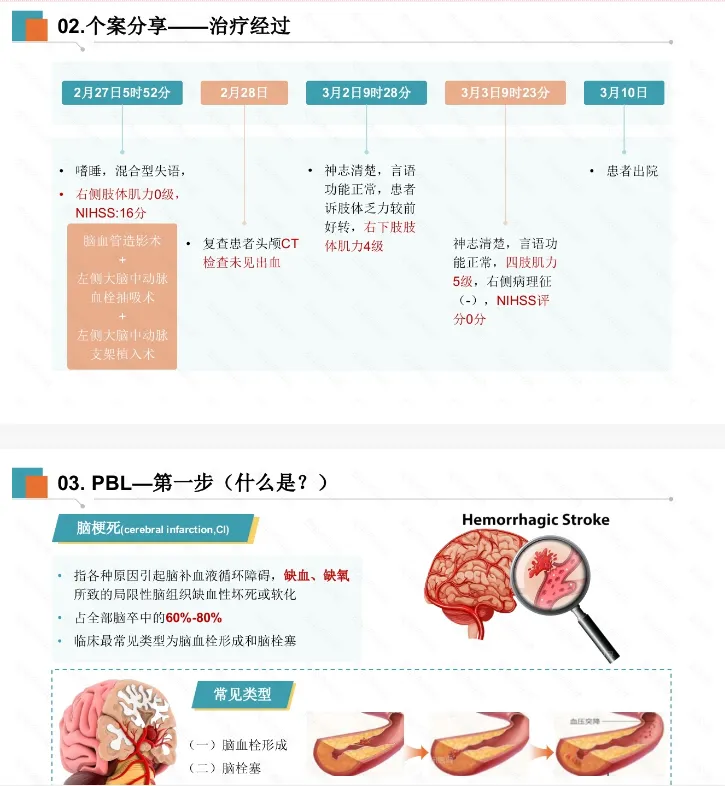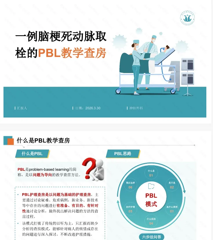 各位老师、同事,大家下午好。欢迎参加本次PBL教学查房。今天我们将围绕一例急性脑梗死、行颅内动脉取栓术的患者,采用PBL教学模式,即以问题为导向,进行病例分析与护理探讨。希望通过今天的查房,能进一步提升我们对脑梗死患者的专科护理能力。