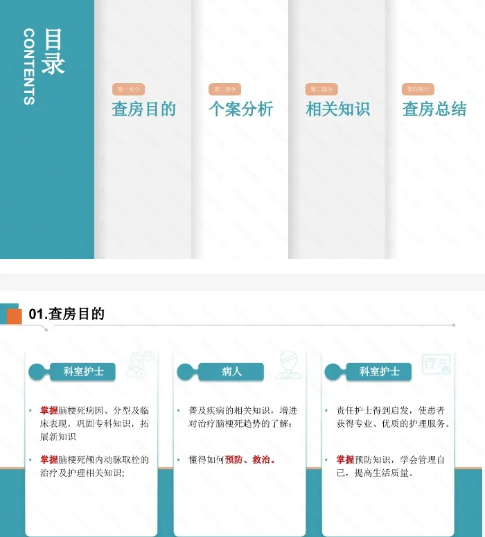 掌握脑梗死的病因、分型及临床表现,巩固专科知识;