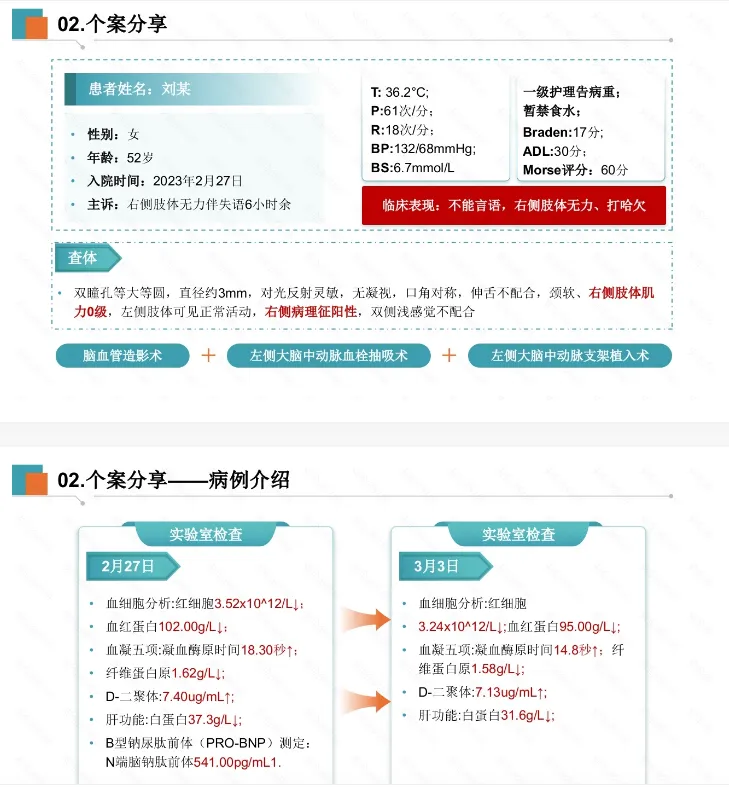 患者刘某,女性,52岁,于2023年2月27日入院,主诉为“右侧肢体无力伴失语6小时余”。