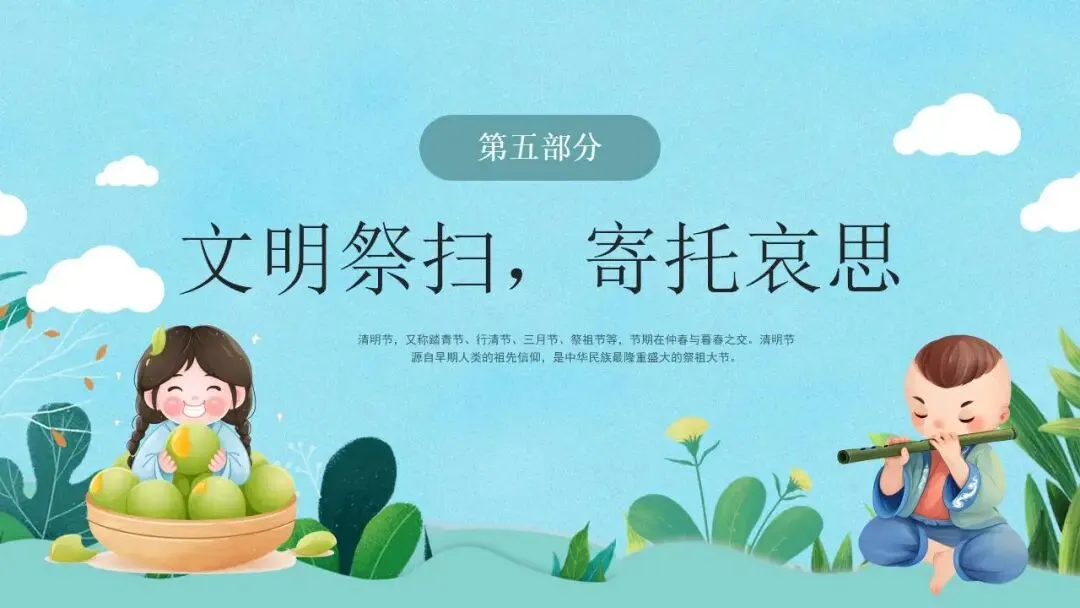 文明祭扫,是对先人的最好告慰,也是对家园的最大守护。一束鲜花,一杯清酒,同样能表达我们的思念;一次鞠躬,一段回忆,更能传递我们的深情。让我们用更加环保、安全的方式,如鲜花祭扫、植树祭扫、网上祭扫等,来缅怀先人,守护绿水青山。