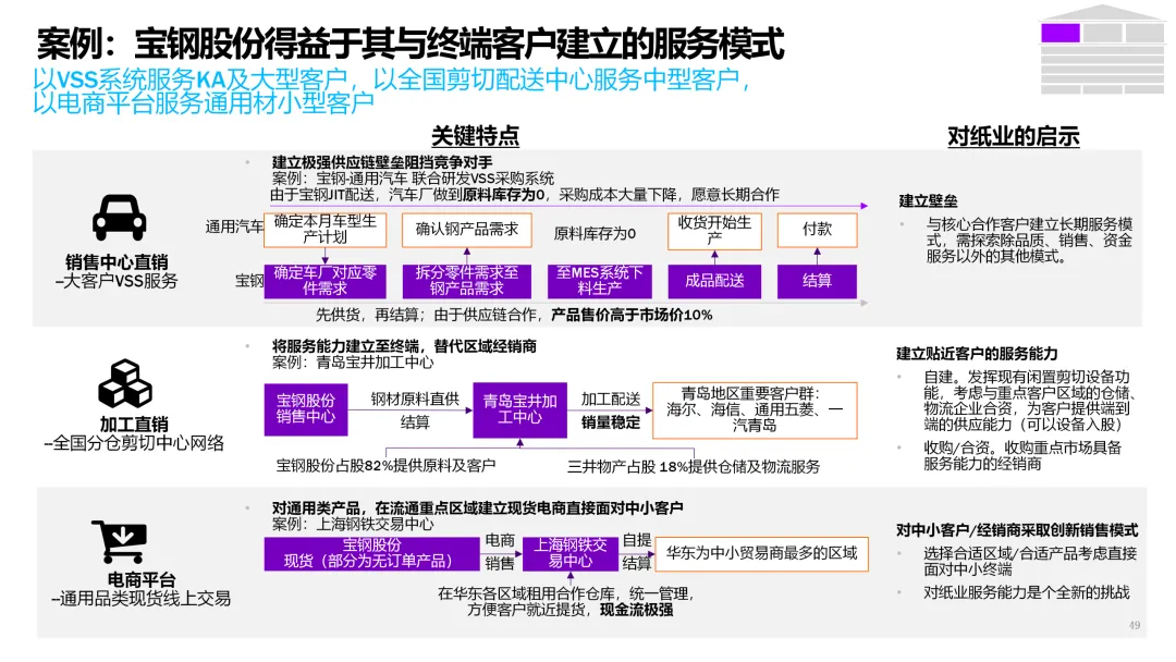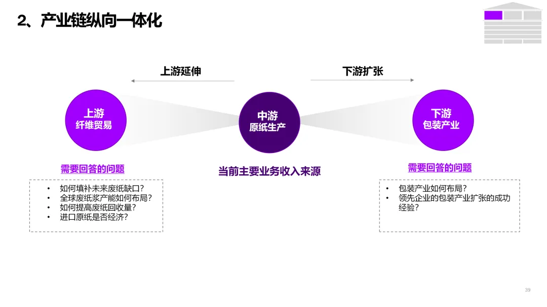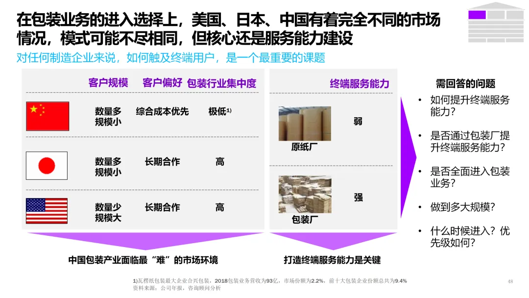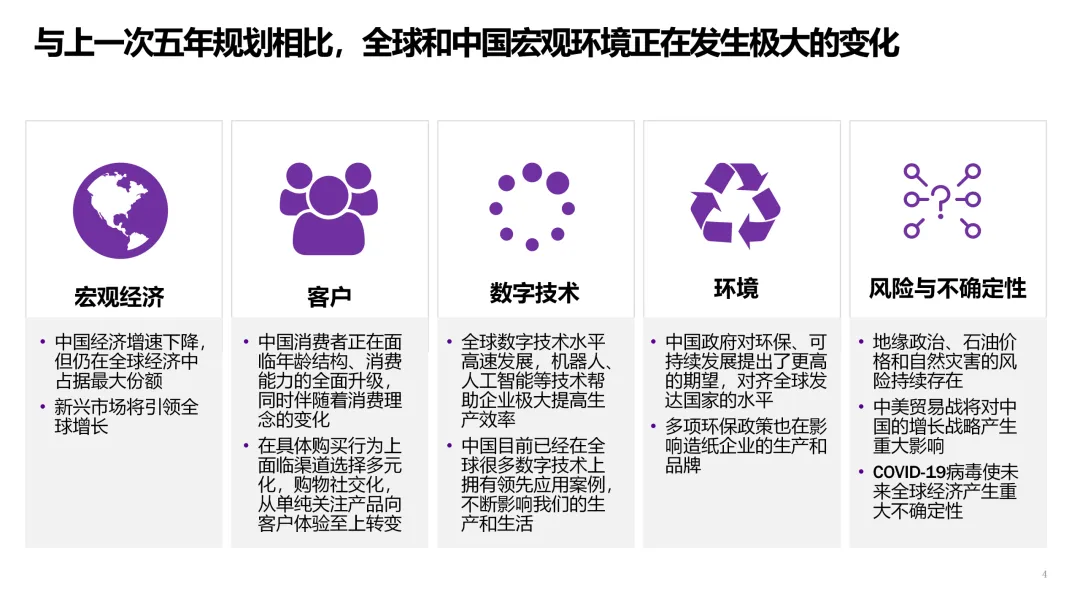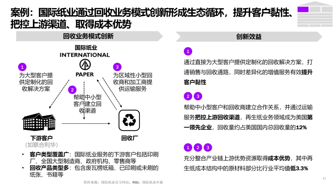 3. 客户直连与生态服务 | 从产品供应商转型为解决方案服务商。 | 1. 上线B2B数字门户,提供在线设计、虚拟打样、一键下单服务。2. 基于物联网,为高端客户提供纸张性能监测、库存管理等增值服务。3. 构建开发者平台,吸引包装设计、印刷企业共创解决方案。 |