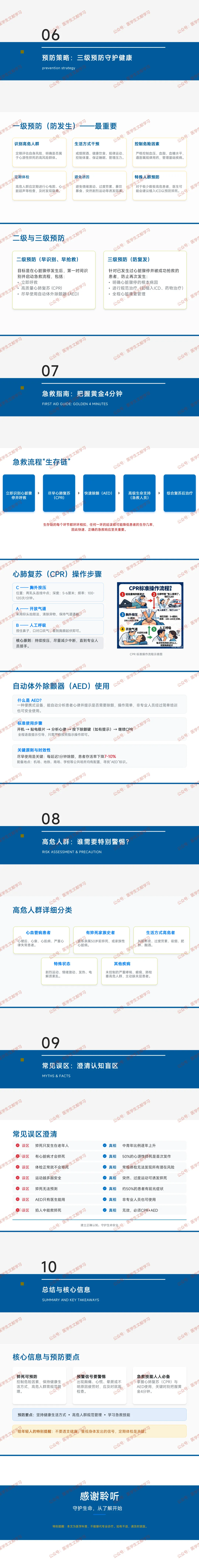 - 误区:有心脏病才会猝死→真相:50% 为首次心脏事件