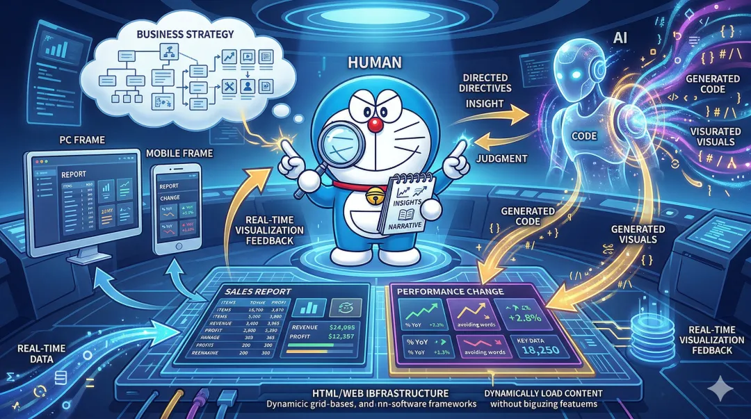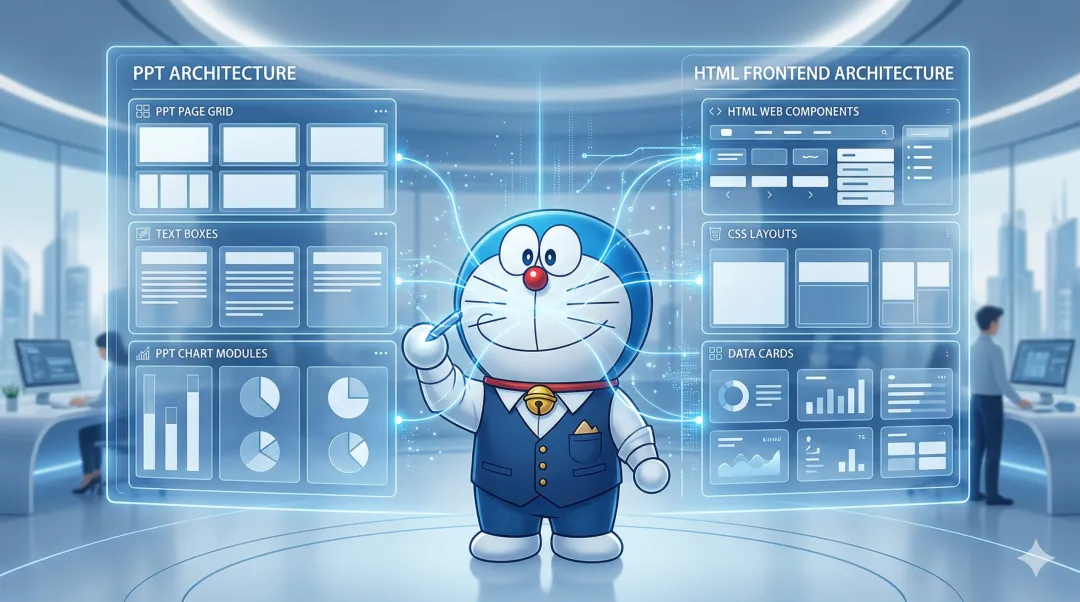 以前如果想做一个能对接数据库、支持动态展示的经营分析页面,背后往往要拉起整条研发链路:产品经理先画原型,设计师再出视觉稿,前端负责把页面写出来,后端还要开放接口、联调数据。整套流程走下来,短则几天,长则几周。对于高频汇报、临时分析、快速迭代的业务场景来说,这种成本几乎注定了 HTML 很难取代 PPT。