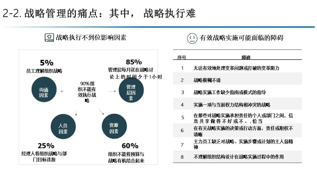 目标沟通不畅、意愿不足、能力欠佳、机制欠缺、信息不畅、变量过多