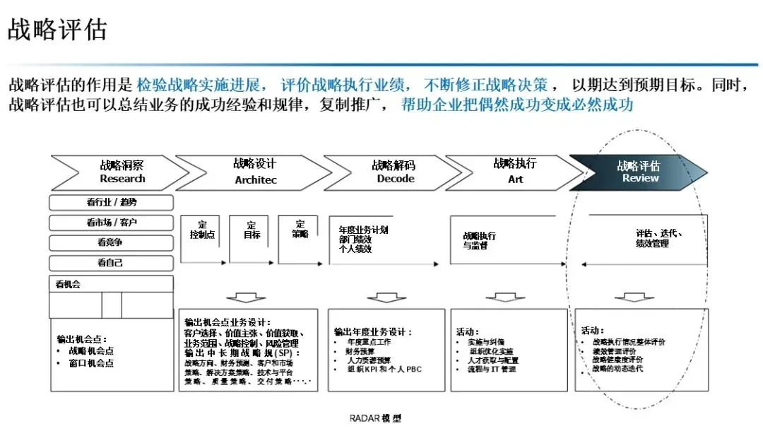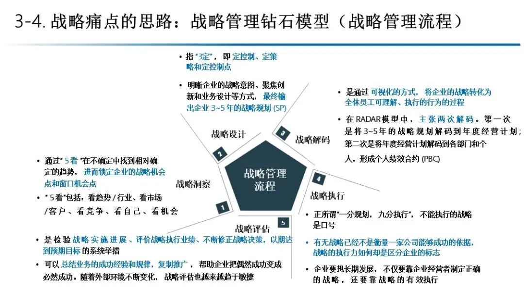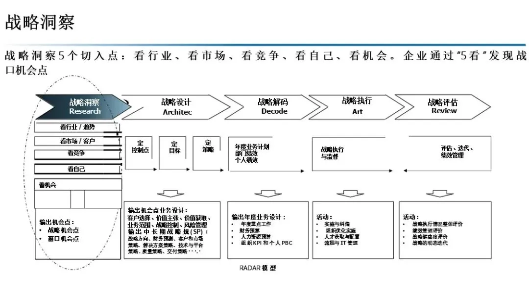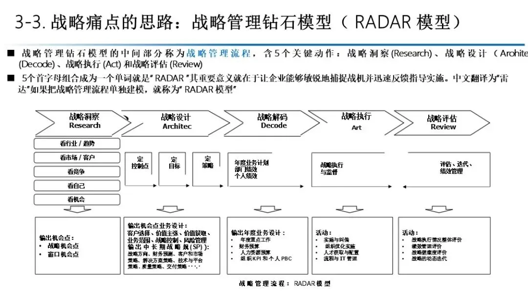 本书提出了“战略管理钻石模型”,其核心是 RADAR 战略管理流程,包含五个关键环节: