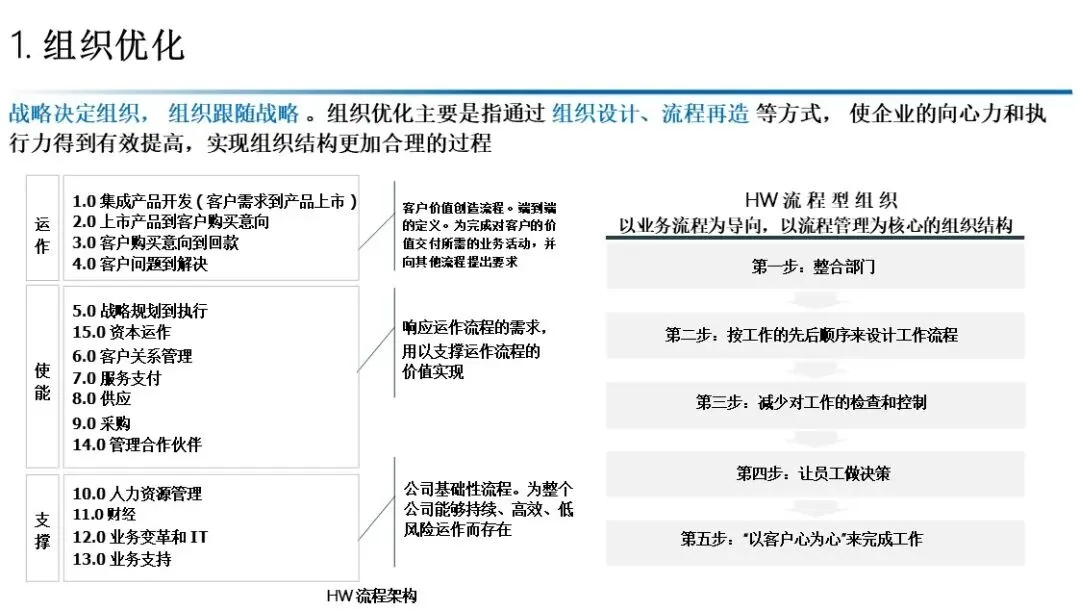 组织优化:流程型组织(IPD、LTC、ITR)、端到端流程设计