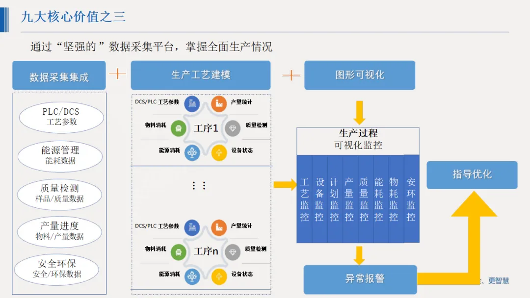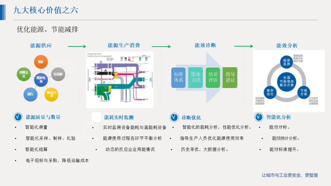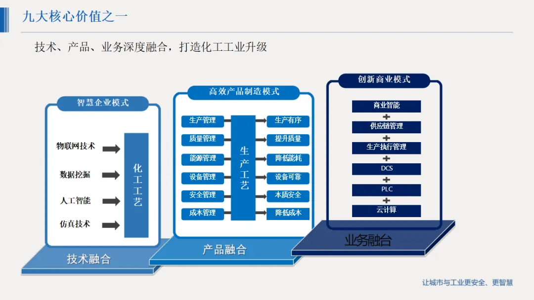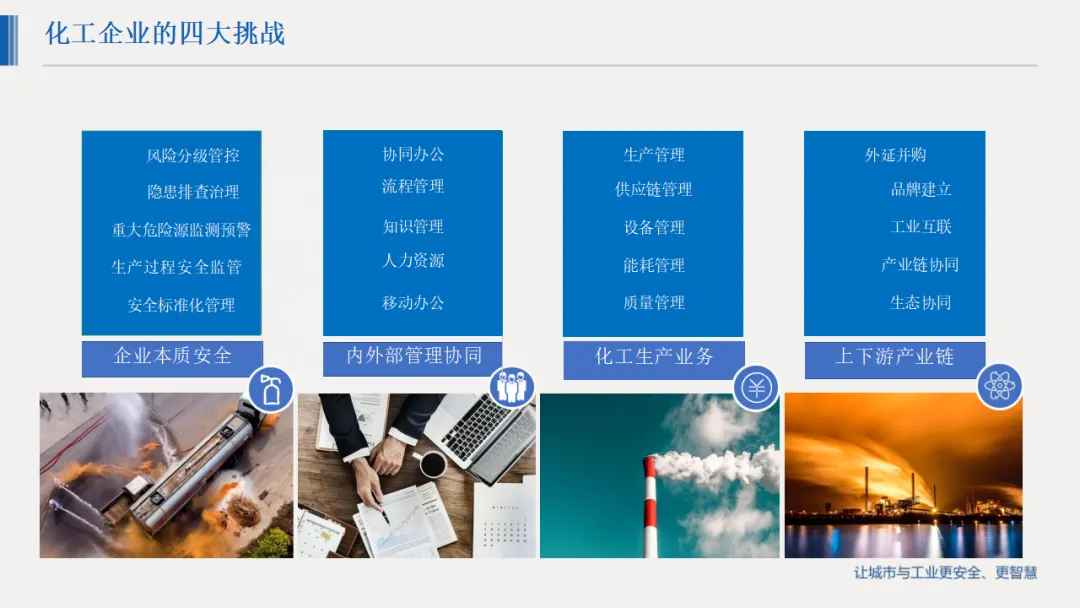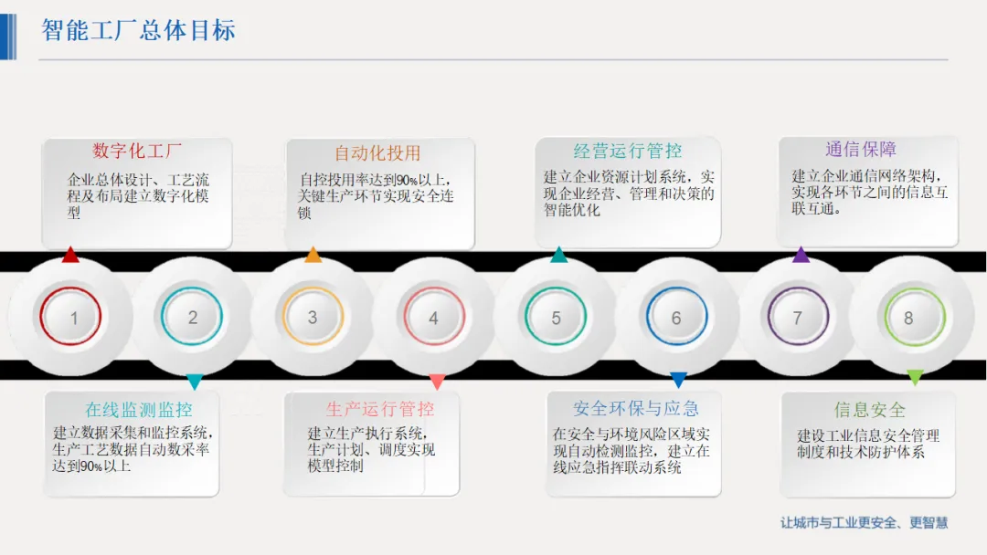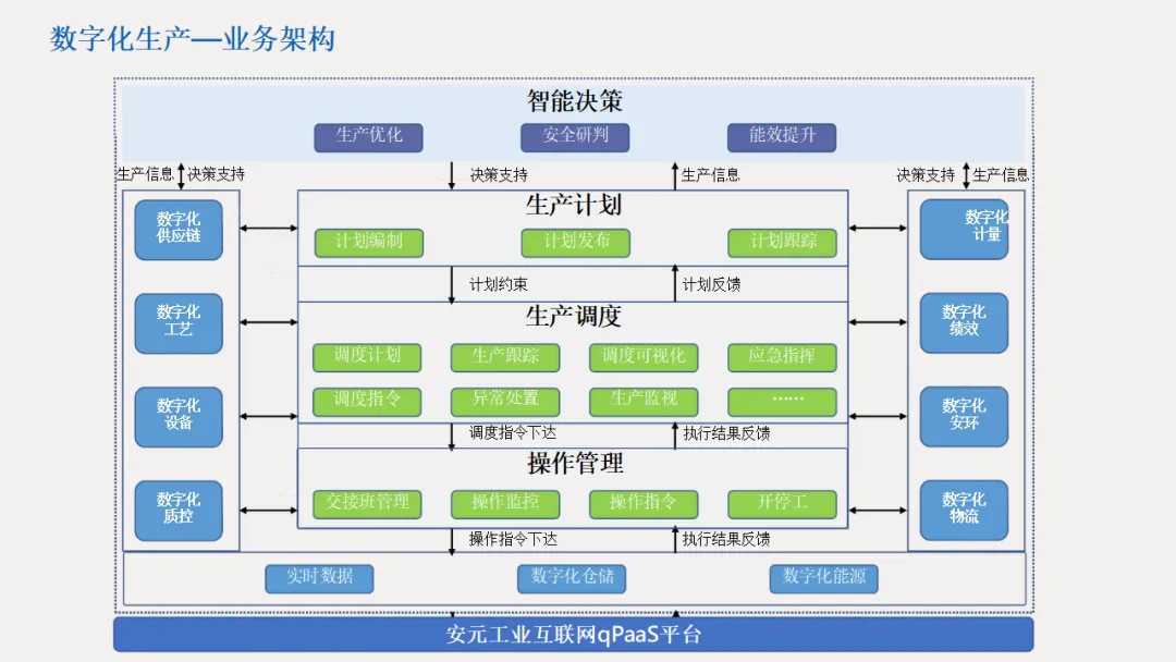 详细解决方案覆盖全业务链条:数字化生产实现工艺管理、物料平衡与生产概览可视化;设备管理构建预防性与预测性维护体系,延长设备寿命;能源管控通过能耗监测与优化模型降低能耗;安全环保板块打造重大危险源动态监测、双重预防体系与应急救援平台,筑牢安全防线;同时配套数字化仓储、物流、供应链及人力资源管理模块,实现全价值链协同。