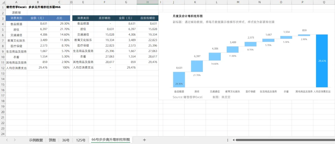 猪爸爸学Excel图表-“步步高升”堆积柱形图