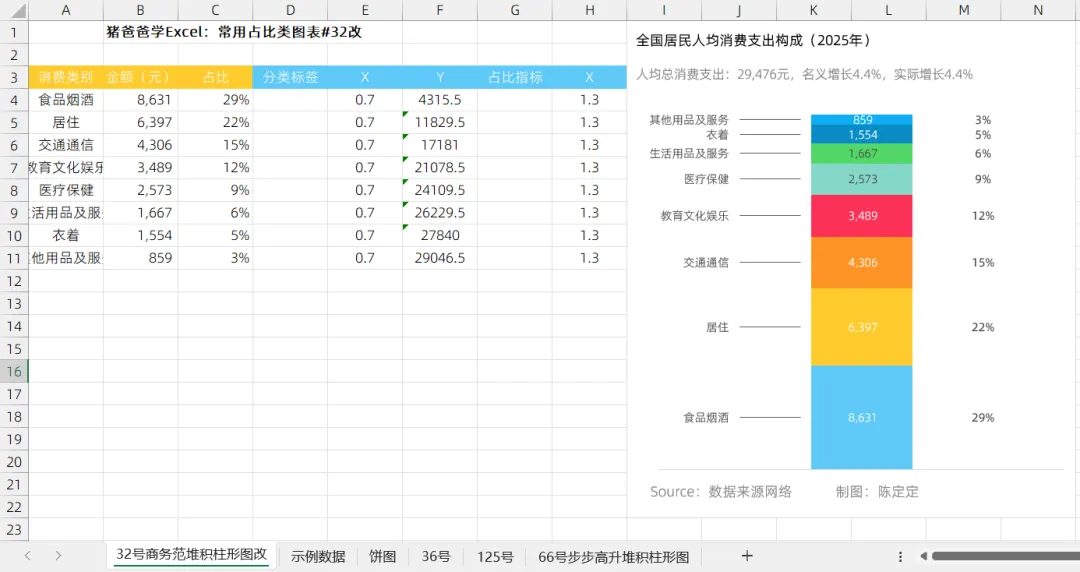 单柱子占比堆积柱形图|猪爸爸学Excel商务图表