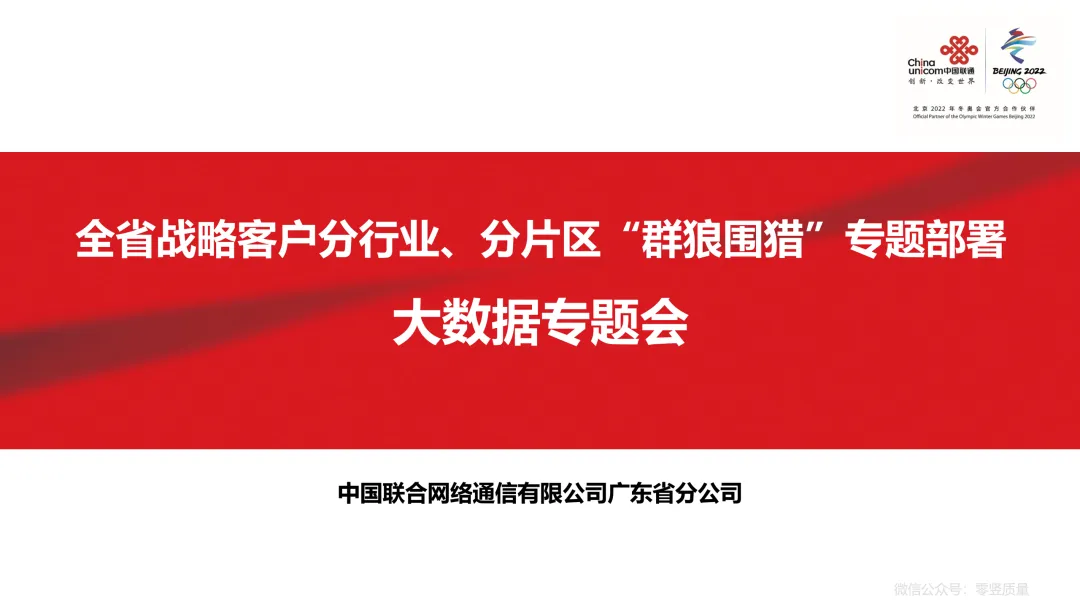 关注“零竖质量”公众号,文末附《第1场:全省战略客户分行业、分片区“群狼围猎”专题部署-大数据专题会V3.3-smj》文件下载方式。 |