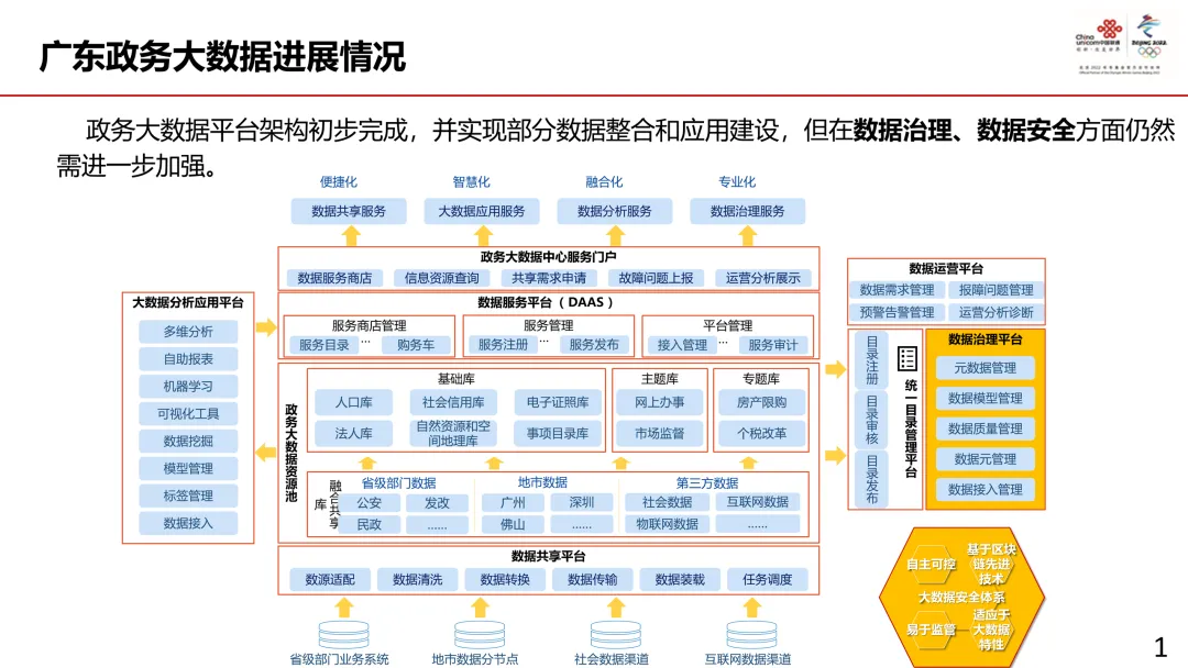 现有进展:广东政务大数据平台架构已初步完成,实现部分数据整合与应用,但数据治理、安全监管仍需强化。