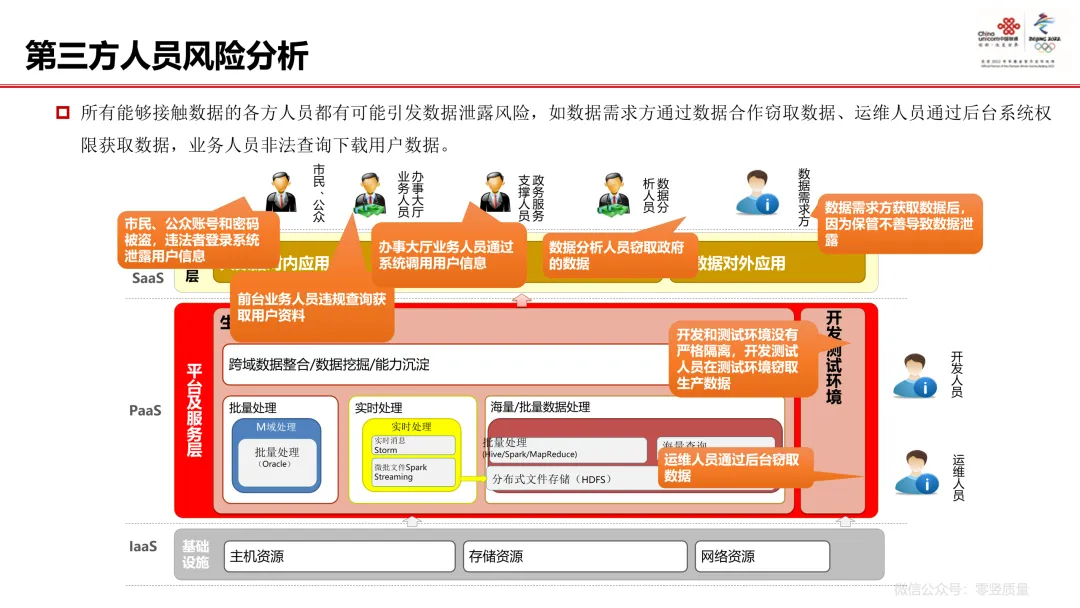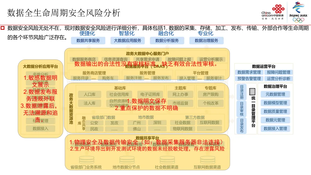 风险识别:数据采集、存储、传输等全生命周期均存在安全风险,且办事人员、运维人员等多方人员可能引发数据泄露。