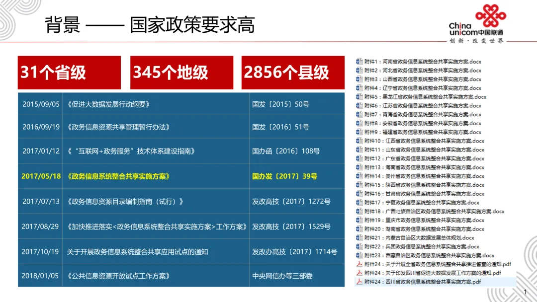 政策驱动:国家先后出台《促进大数据发展行动纲要》《政务信息资源共享管理暂行办法》等多项政策,推动 31 个省级、345 个地级及 2856 个县级行政区的政务数据整合共享。