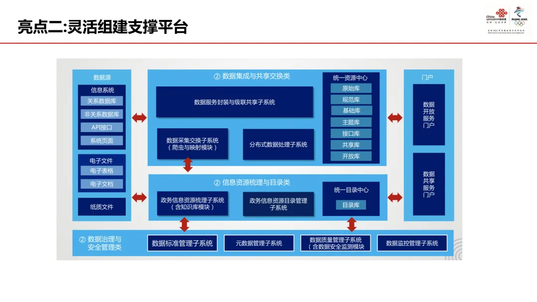 建设亮点:通过 “知识库 + 工具” 快速搭建 7 大目录体系,灵活组建数据集成、目录管理等支撑平台,建立制度 + 规范 + 评估的长效机制。