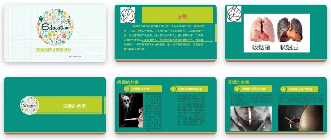 这款烟头环境危害PPT,以完整的内容体系与权威的研究数据,完美适配医院各类科普宣讲、院内培训、无烟环境建设等非诊疗场景。