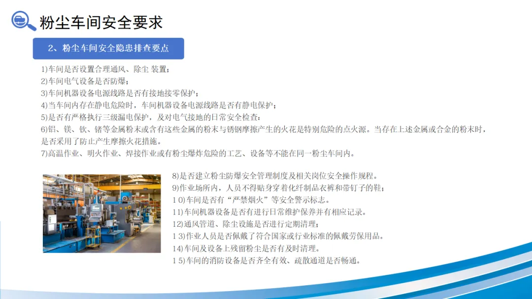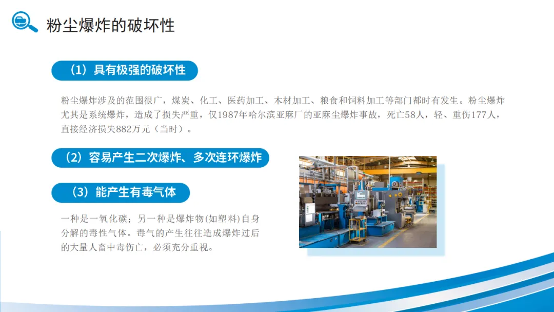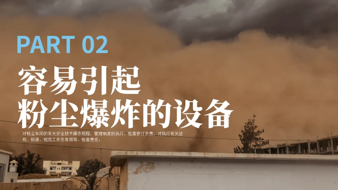 了解哪些设备和工艺容易产生爆炸性粉尘环境,是预防的第一步。