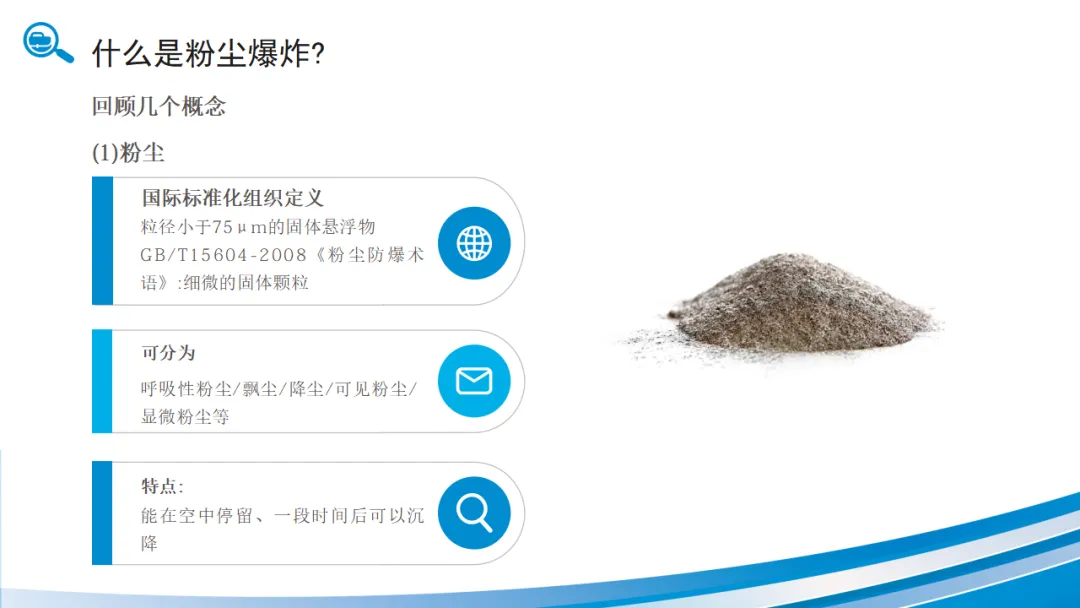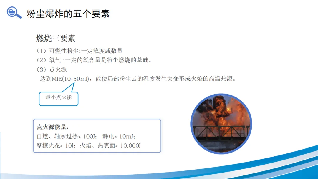 这些粉尘的共同特点是:粒径小(通常小于75微米)、比表面积大、燃烧热值高、在空气中达到一定浓度。
