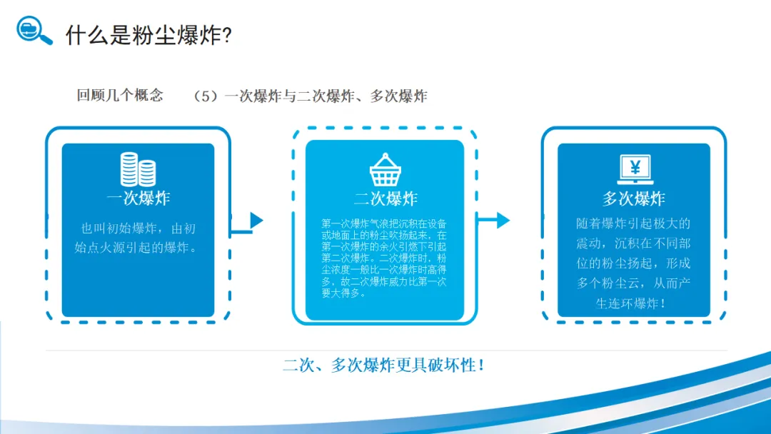 初始爆炸冲击波扬起地面和管道积尘,形成更大范围的粉尘云,引发更猛烈的二次爆炸。