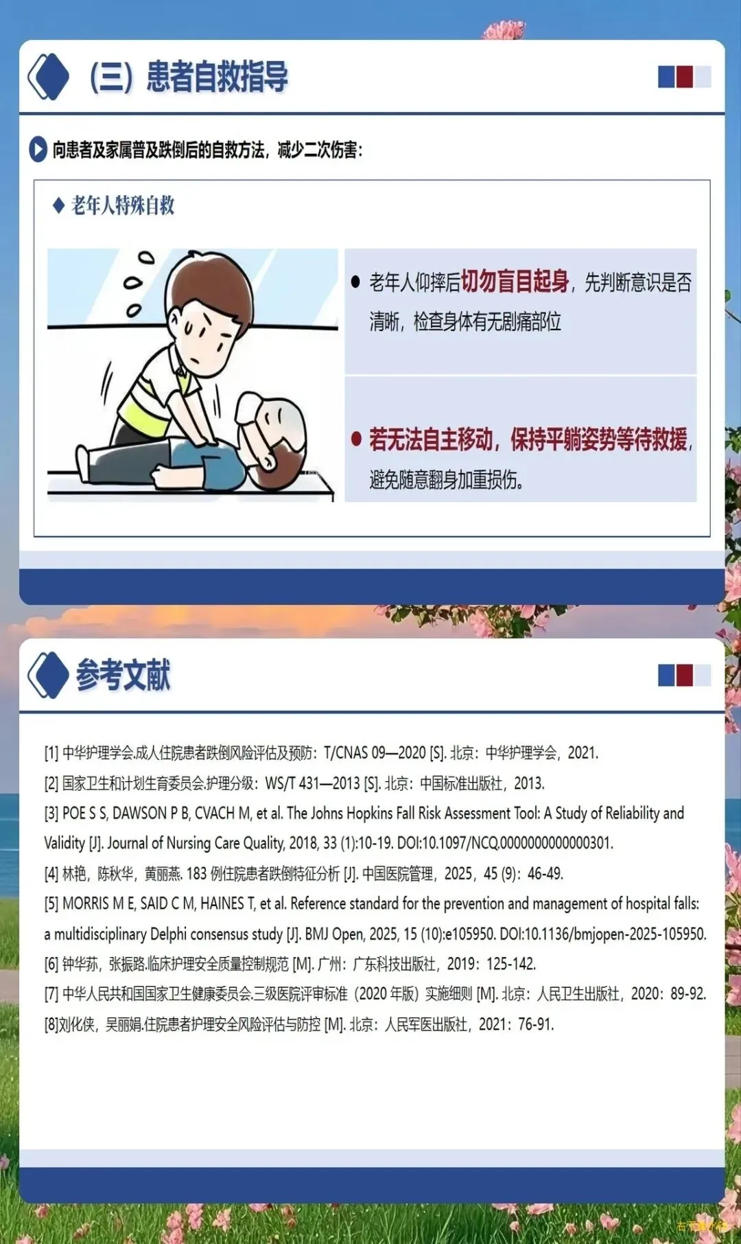跌倒预防不是护理部门的单独责任,而需要医疗、护理、药学、康复、后勤等多学科协作。医师在用药时应权衡药物对患者平衡功能和意识状态的影响,尽量选择跌倒风险较低的替代药物;药师可以提供药物相互作用及不良反应的咨询;康复治疗师可以指导患者进行平衡功能和步态训练;后勤部门保障环境设施的安全完好。