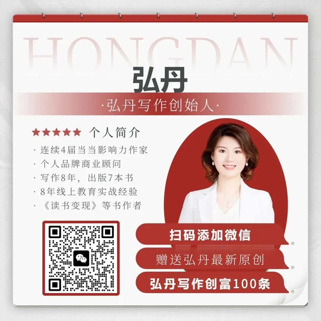 PS:欢迎大家关注“弘丹写作”的视频号,我会经常在视频号直播分享我读过的好书,也一起聊聊AI写作。