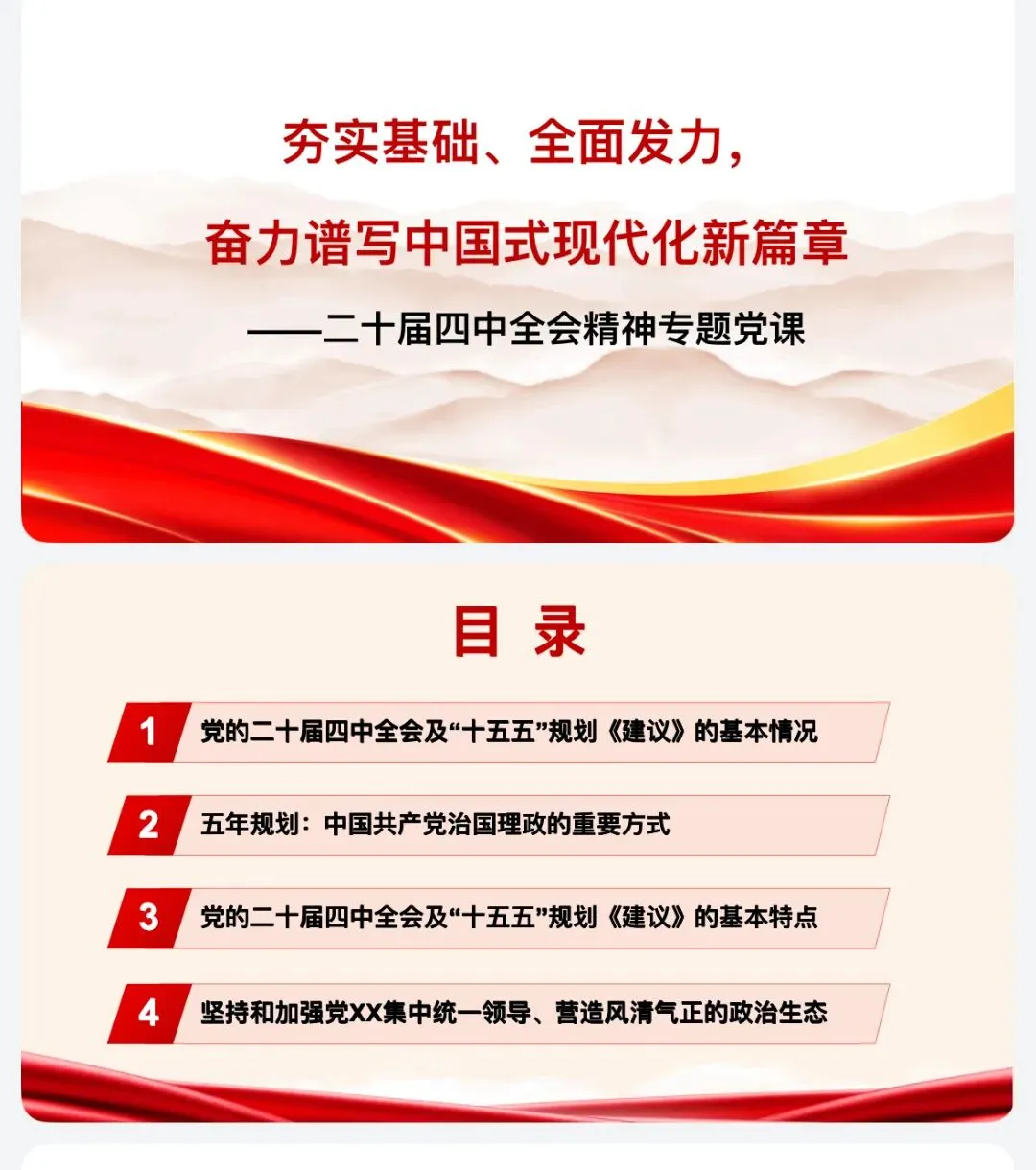 >(34页)党课PPT:四中全会党课:夯实基础、全面发力,奋力谱写中国式现代化新篇章