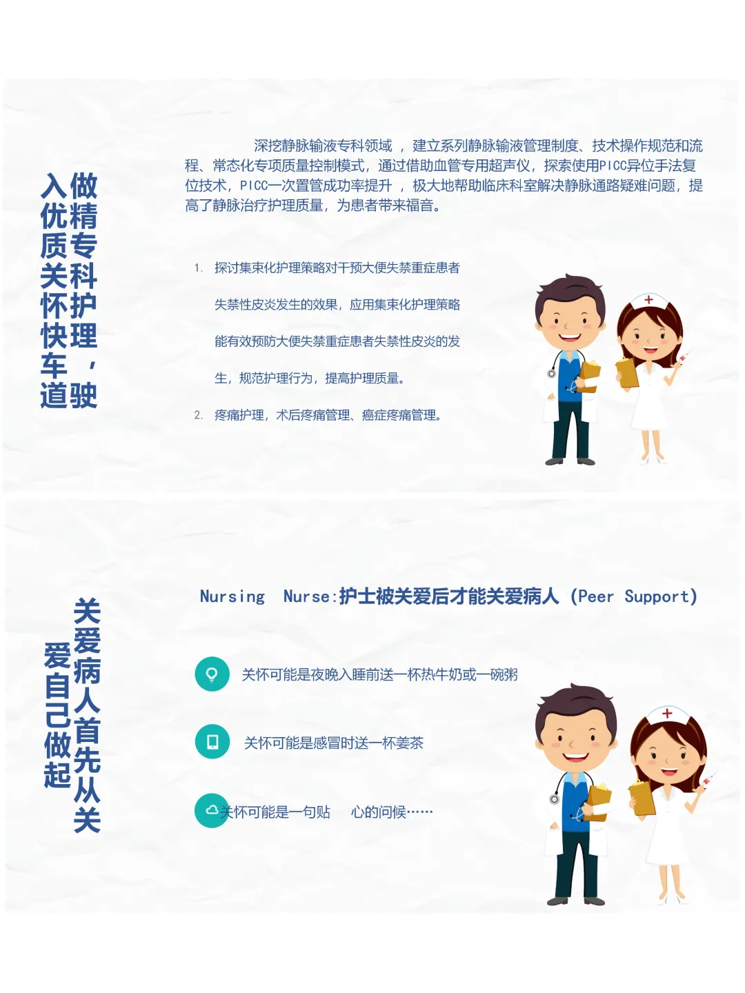 其实人文关怀都藏在细节里,深夜拉住想轻生的患者、坚持唤醒昏迷的老人、为化疗脱发的患者准备帽子,这些小事看似平凡,却能给患者莫大的力量。优质护理还要结合专科能力,比如深耕静脉输液专科、做好疼痛护理、集束化护理预防失禁性皮炎,专业的技术加上温暖的关怀,才是真正的优质护理。