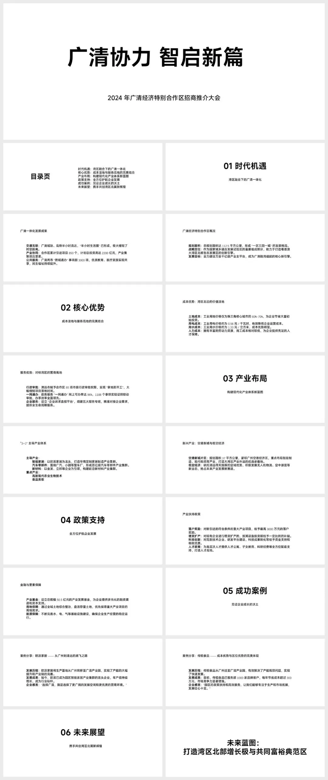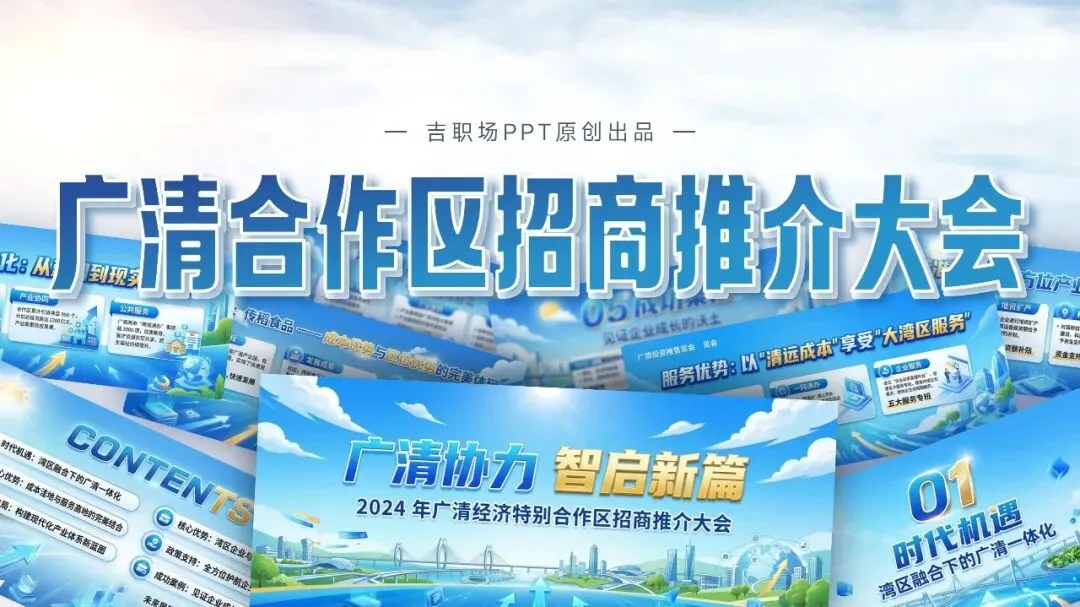 今天我们将通过分析广清经济特别合作区招商推介大会PPT,来学习如何制作一份专业、有说服力的商务演示文稿。这期给大家分享一套以“广清协力 智启新篇”为主题的,广清经济特别合作区招商推介大会。