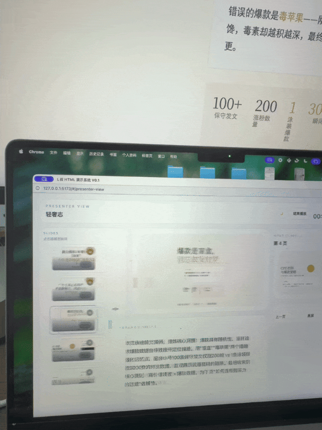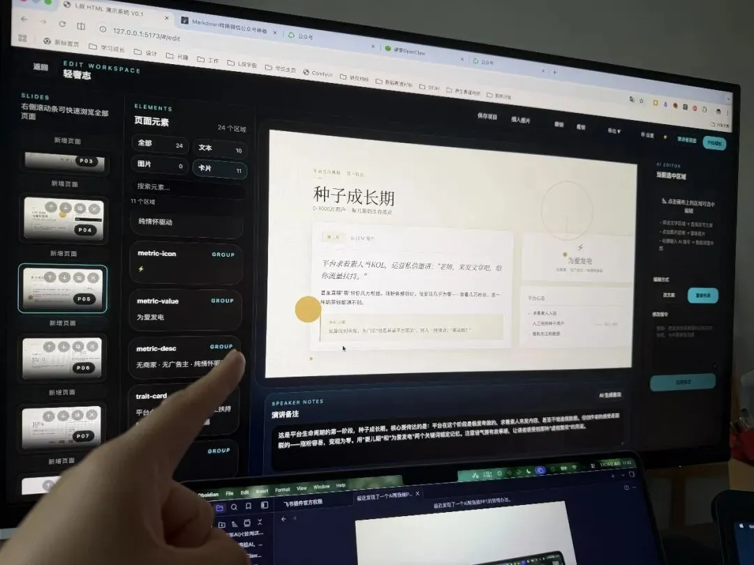 当你在这个项目里做好了HTML幻灯片, 不用再像以前需要 AI 专门帮你写一个切换按钮,然后自己手动点击。