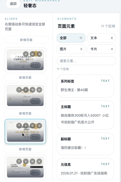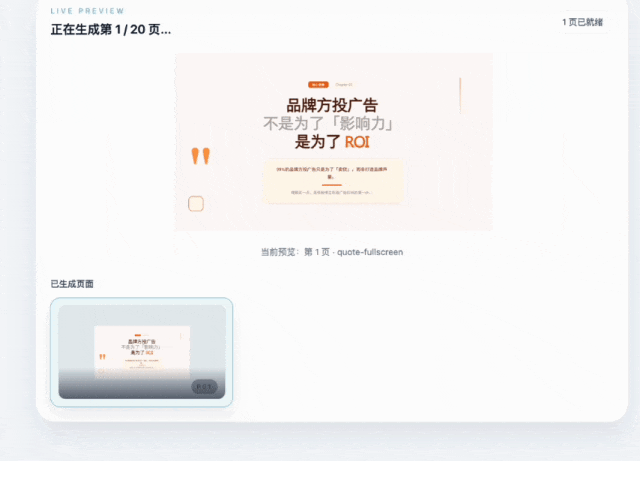 就可以对你的文字稿进行自动化的分析和生成对应的页面,同时能够拆解成一页一页,而不是打包在一起。
