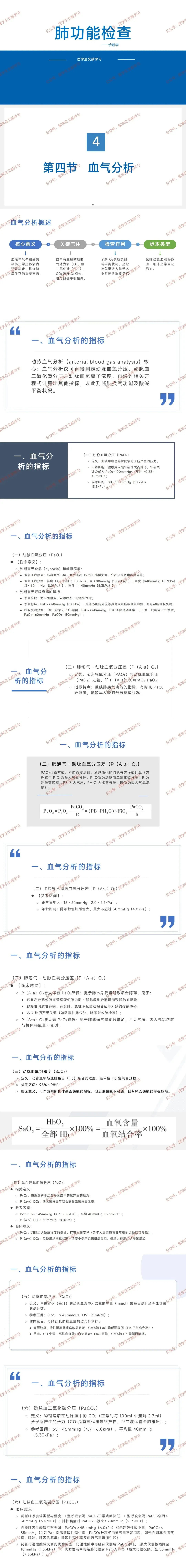 PAO₂计算:无法直接测量,需通过简化肺泡气方程式计算(涉及 PIO₂、PaCO₂、R、PB、PH₂O、FiO₂等参数)。