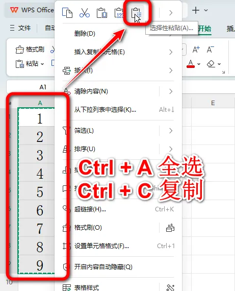 3.左键单击选中表格中任意空白单元格,右键单击,选择右键菜单中的「选择性粘贴」。