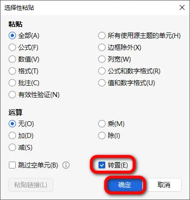 1.在弹出的「选择性粘贴」窗口中,勾选「转置」。