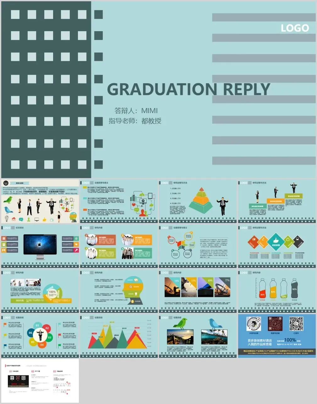 温柔系毕业答辩PPT模板|莫兰迪色治愈学术焦虑