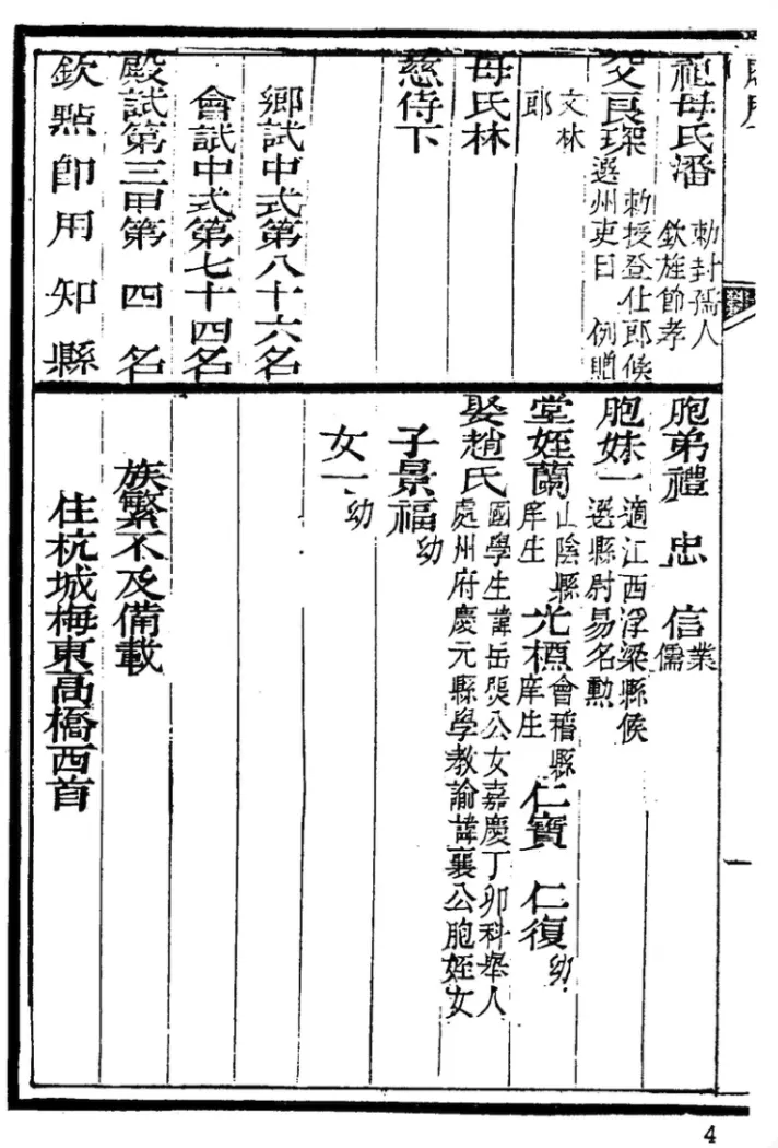 - 妻子:赵氏 —— 出身也不简单,是处州府庆元县学生之女,而她父亲还是嘉庆丁卯科举人!