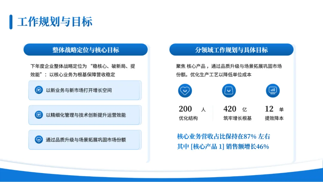 好处就是视觉冲击力强,能让观众快速聚焦核心信息,还容易凸显汇报的专业与大气感。