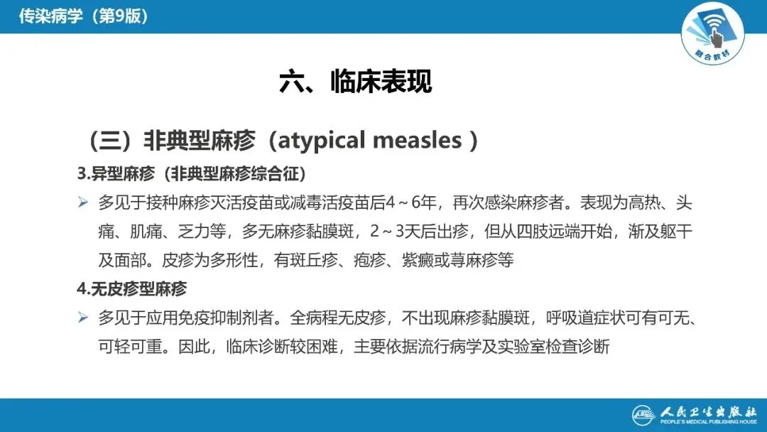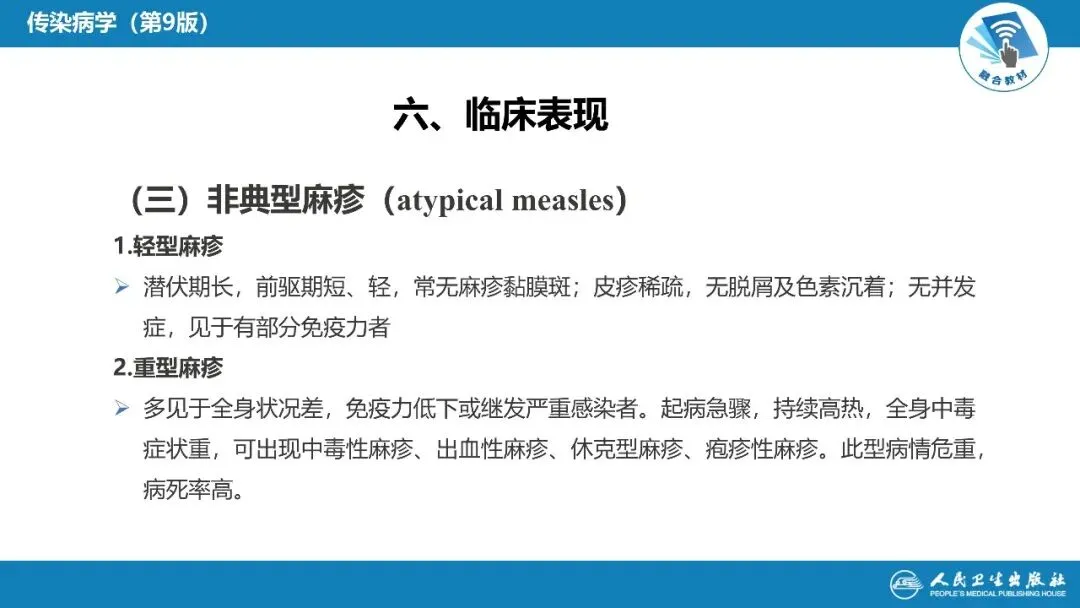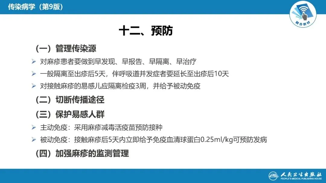 麻疹作为乙类急性呼吸道传染病,是儿科、感染科临床诊疗的常见疾病,也是医护人员职称考核、医学生备考的核心考点,掌握其完整诊疗与防控知识尤为关键。全新上线麻疹精品 PPT 学习资料,本资料由中国医科大学窦晓光教授相关课件整理,严格贴合《传染病学(第 9 版)》教材,内容专业系统、重点突出,是临床诊疗参考、教学备课、考点梳理的优质素材,现正式在平台上线!